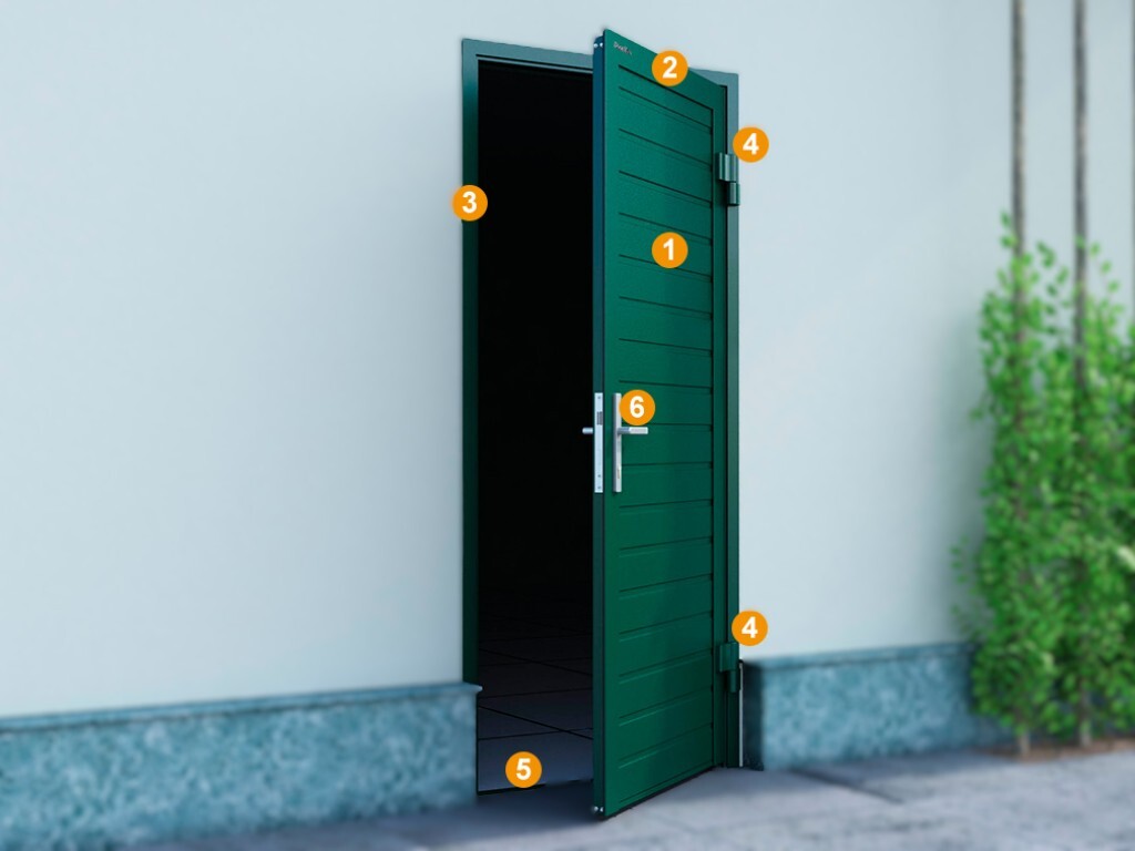 • КОРРОЗИОННАЯ СТОЙКОСТЬ Полотно из сэндвич-панелей, окантованное окрашенными порошковой краской алюминиевыми профилями, надежно защищено от коррозии. • УНИВЕРСАЛЬНОСТЬ ПРИМЕНЕНИЯ Двери могут быть изготовлены с открыванием в левую или правую сторону, наружу или внутрь помещения. • ТЕПЛОЭФФЕКТИВНОСТЬ Двойной контур уплотнения исключает сквозняки, повышает звукоизоляцию и энергоэффективность, устраняя контакт сэндвич-панели с профилем с внутренней стороны. • УДОБСТВО ИСПОЛЬЗОВАНИЯ Небольшая высота порога, всего 8 мм, обеспечивает удобную эксплуатацию двери.