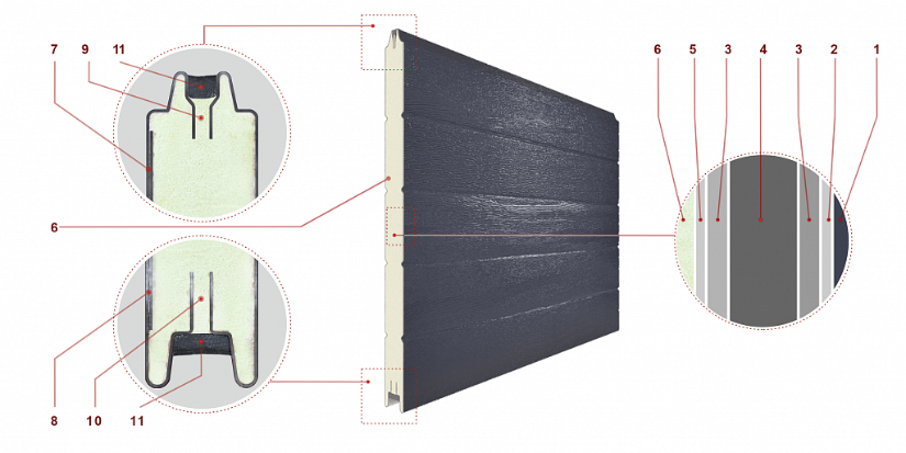 В воротах ZAIGER применяются сэндвич-панели, производимые в России. Эти панели полностью соответствует Российскому ГОСТ Р 59 685−202 и Европейскому стандарту EN 13 241−1.