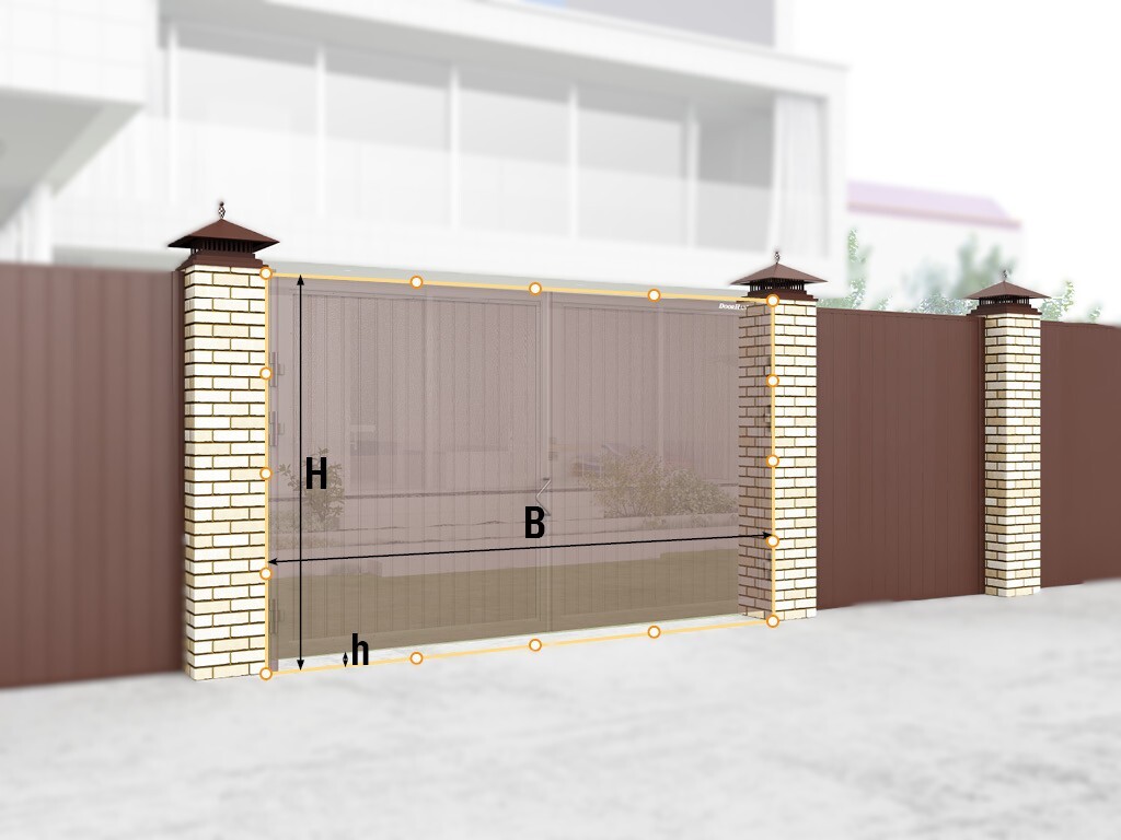 Замер каждого параметра производится минимум по трем точкам. За итоговый размер берется максимальное значение. H — высота проема (расстояние от земли до верха проема). B — ширина проема (расстояние от левого края до правого края проема). h — просвет (расстояние от нижнего края створки до уровня земли). Рекомендуемая величина — 100 мм.