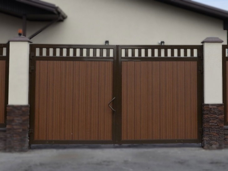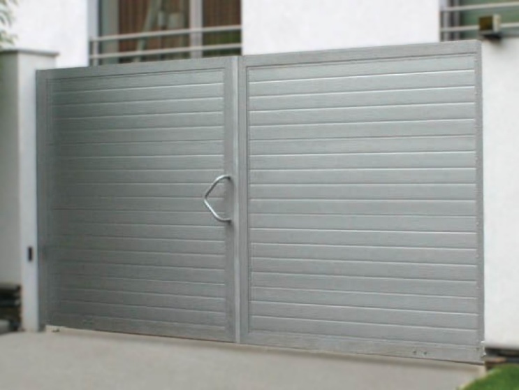Распашные ворота в алюминиевой раме с заполнением сэндвич-панелями SWS